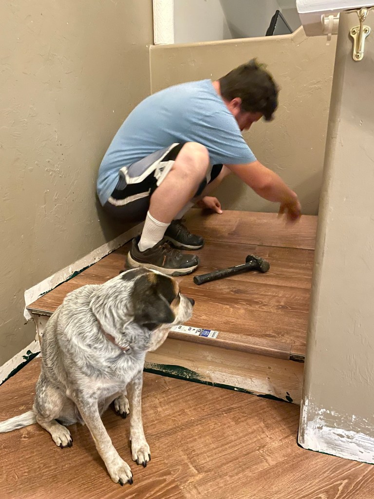 Philip’s dog, Penny, helped us accomplish a stairwell renovation. Though our fur-babies don’t usually make appearances at our job sites, this was a special exception.